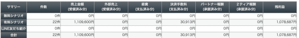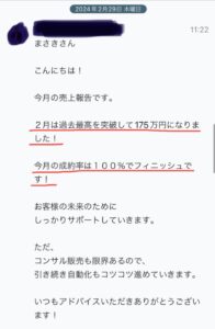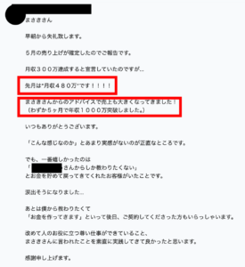 (日給50万の日もありますが、こちらは5万円のフロント商品の単月での売上です。ここから上位商品がさらに売れている状況です)